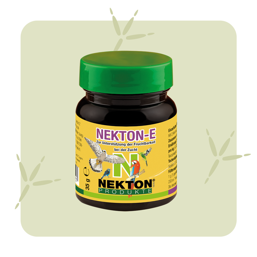 Für die erfolgreiche Vogelzucht ist NEKTON-E als Kur die ideale Futterergänzung. Alpha-Tocopherol, eine hochwirksame Vitamin-E-Komponente, sorgt in der speziellen Mischung dafür, dass das Immunsystem von Vogel und Reptil umfassend gestärkt, die Fruchtbarkeit verbessert und die Lebensfähigkeit geschlüpfter Jungtiere erhöht wird. Darüber hinaus wirkt sich NEKTON-E positiv auf den gesamten Zellstoffwechsel aus und sorgt für ausreichende Vitamin-E-Versorgung.