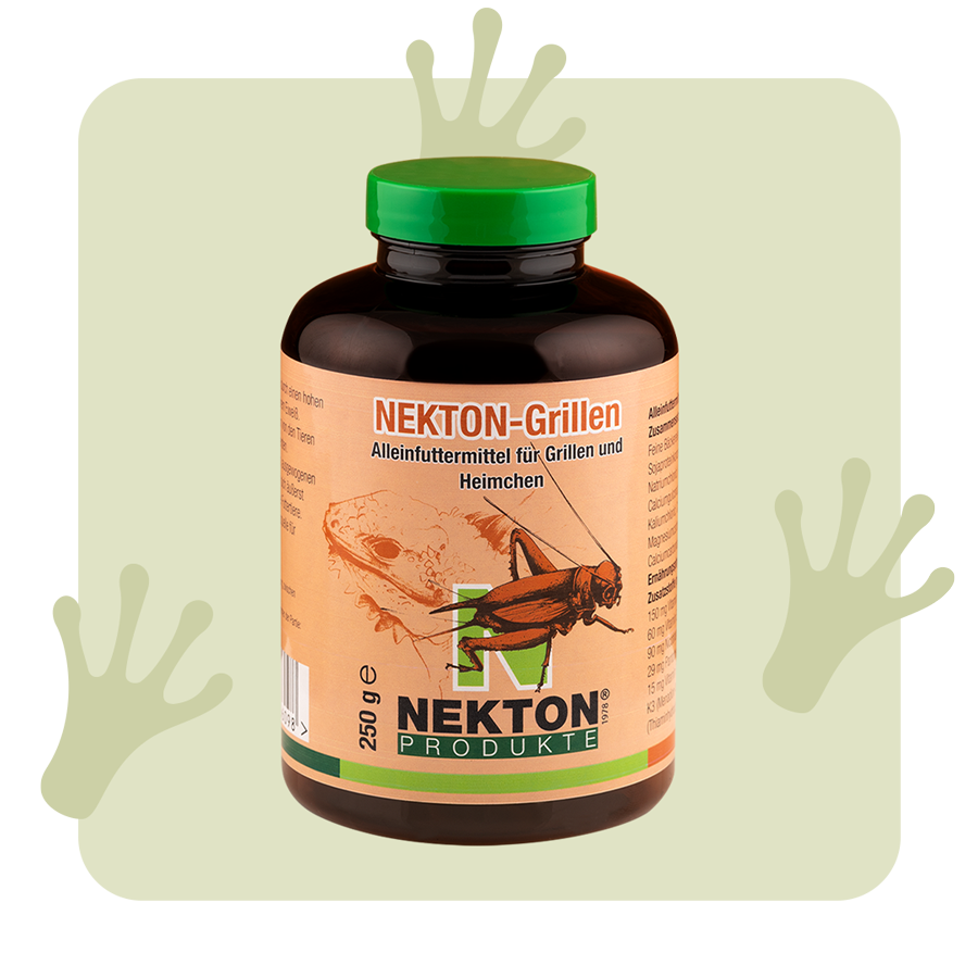 NEKTON-Grillen-Zuchtkonzentrat ist eine fertige Mischung und enthält alle lebensnotwendigen Eiweiße tierischer und pflanzlicher Herkunft, Vitamine und Mineralien (Mengen- und Spurenelemente). Es ist keine weitere Zufütterung nötig! Als Wasserquelle empfehlen sich Gurkenscheiben. Mit dem NEKTON-Grillen-Zuchtkonzentrat werden die ernährungsspezifischen Bedarfswerte der Grillen und Heimchen, welche sich von pflanzlichen und tierischen Stoffen ernähren, berücksichtigt. Durch die reich enthaltenen wertvollen Inhaltsstoffe entwickeln sich gesunde, hochwertige und große Futtertiere als optimale Futterquelle für Reptilien und Vögel. Die Puderform begünstigt für die Grillen und Heimchen die Aufnahme des Zuchtkonzentrats.