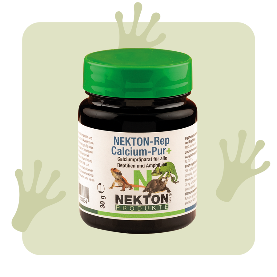 NEKTON-Rep-Calcium-Pur+ ist ein hochwirksames Calciumpräparat mit Mineralstoffen, angereichert mit Spurenelementen ohne Vitamin D3 zur Vorbeugung und zum Ausgleich von Calciummangel und dessen Folgeerkrankungen. Es unterstützt den optimalen Ausbau und Erhalt des Skeletts und begünstigt einen gesunden Calciumstoffwechsel bei Reptilien und Amphibien. NEKTON-Rep-Calcium-Pur+ enthält kein Vitamin D3 und ist speziell für Tiere entwickelt, welche genügend mit UVB-Licht versorgt werden oder frei lebende Tiere mit ausreichender Sonneneinwirkung (ca. 10 Stunden). Diese können körpereigenes Vitamin D produzieren und brauchen somit keinen Extraanteil Vitamin D3 im Produkt.