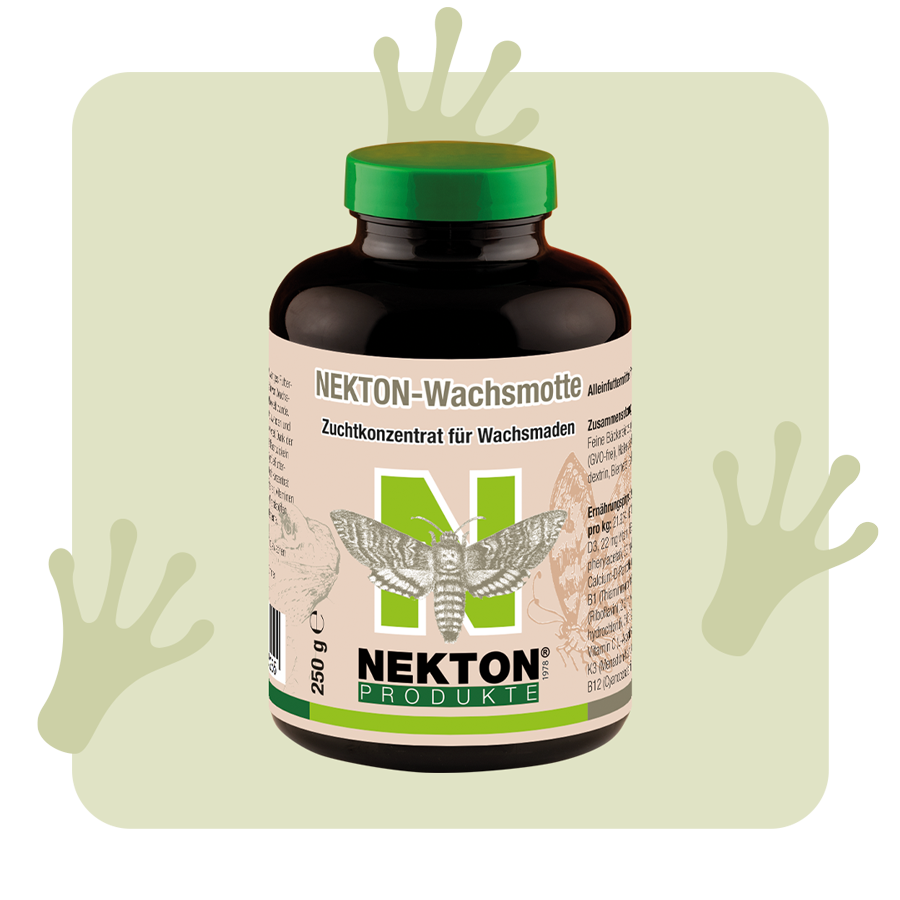 NEKTON-Wachsmotte Zuchtkonzentrat ist ein vollwertiges Futtermittel, das speziell für die Aufzucht von Wachsmaden (Wachsmottenlarven) entwickelt wurde. Dieses Futter ist einfach anzuwenden und wird von Larven optimal verwertet. Dank der enthaltenen wertvollen Inhaltsstoffe entwickeln sich gesunde, hochwertige und große Futterinsekten. Unser NEKTON-Wachsmotte Zuchtkonzentrat ist reich an lebenswichtigen Proteinen, Vitaminen sowie einer breiten Palette von Mineralstoffen, darunter Mengen- und Spurenelemente. Wachsmaden werden in der Terraristik schon seit langer Zeit gezüchtet und sind aufgrund ihrer hohen Nährstoffdichte und ihres süßen Geschmacks äußerst beliebte Futterinsekten für eine Vielzahl von Terrarientieren. Sie eignen sich sowohl für größere Fischarten wie Buntbarsche als auch für Frösche und Reptilien wie Skinke, Chamäleons und Geckos. Darüber hinaus sind sie auch bei Vögeln und kleinen Säugetieren sehr beliebt.